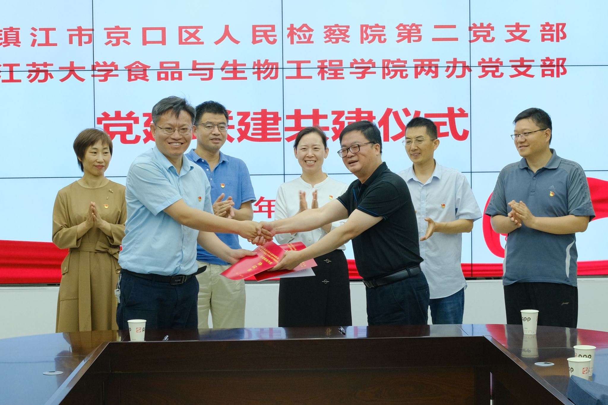 为进一步探索党建工作模式,拓展校地合作新领域,巩固拓展党史学习教育成果,6月8日,食生学院两办党支部与京口区检察院第二党支部签署校检合作共建协议。京口区检察院党组成员、政治部主任、党总支书记杨钰,党总支副书记、第二党支部书记张波,bat365中文官方网站党委书记万由令,两办党支部全体党员及师生党员代表参加签约仪式。