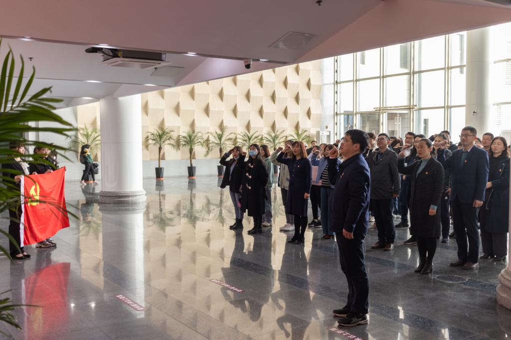 “主题展”现场,院党委副书记、院长邹小波带领全体党员面向党旗重温了入党誓词。全体参观党员还跟随讲解员一同参观学习了主题展,并纷纷在留言墙、拍照框等互动区域拍照留念、留言互动。
