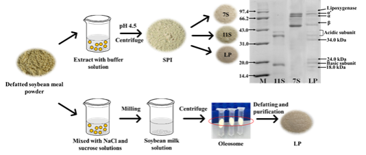 Figure 1. Method for extracting LP from SPI or oleosome and SDS-PAGE of 11S, 7S, and LP.