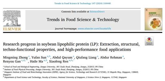 近日,bat365中文官方网站任晓锋教授课题组在国际食品领域顶级期刊《Trends in Food Science & Technology》(Q1,IF=14.9)在线发表了标题为“Research progress in soybean lipophilic protein (LP): Extraction, structural, techno-functional properties, and high-performance food applications”的综述性论文(DOI: 10.1016/j.tifs.2024.104440)。bat365中文官方网站专任教师钟明明博士为该论文的第一作者,任晓锋教授和新加坡国立大学甘人友教授为通讯作者。