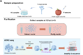 图 1. ATAC-seq揭示P. expansum染色质开放性及转录因子结合位点特征