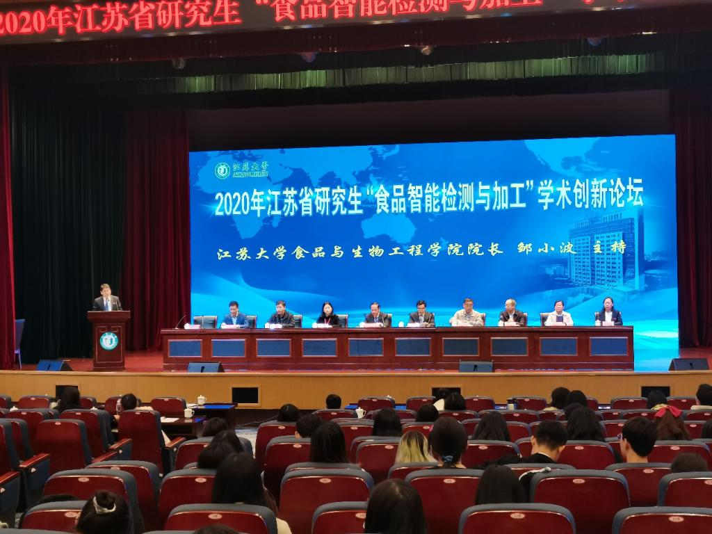 11月18日,2020年江苏省研究生“食品智能检测与加工”学术创新论坛在我校举办,论坛由江苏省学位委员会、江苏省教育厅主办,bat365中文官方网站承办,江南大学协办。论坛采用线上线下同步,主题报告和分论坛报告相结合的方式,扩大影响,共享学术盛宴。开幕式在学校小礼堂举行,副校长赵玉涛、江苏省教指委代表徐宝才、江苏今世缘酒业吴建峰副董事长、江苏省各高校食品领域相关的老师以及研究生代表参加了此次开幕式,开幕式由bat365中文官方网站院长邹小波主持。