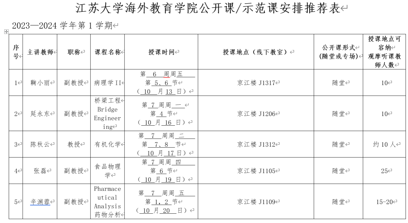为提升食生学院教师全英文教学能力和教学水平,近期我院动员和组织教师们线下观摩了海外教育学院英文公开课。英文公开课安排如下图所示:
