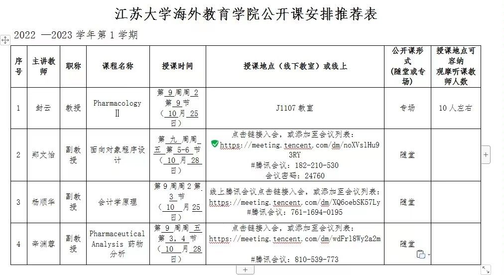 为响应海外教育学院(以下简称海院)号召,促进学院教师全英文教学能力与水平的提升,近期bat365中文官方网站动员、组织教师在线上或线下观摩海院英文公开课。海院英文公开课安排如下图所示: