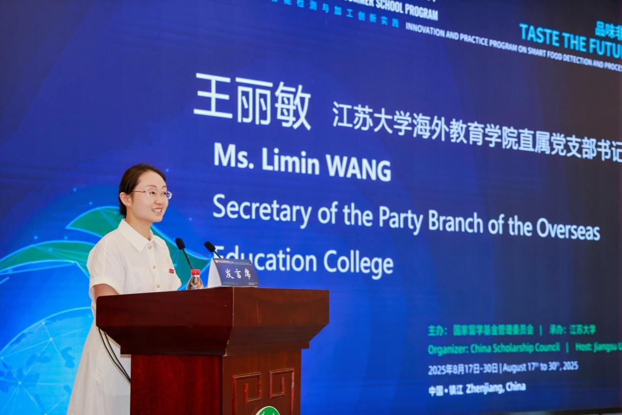 王丽敏代表bat365中文官方网站向全体学员表示热烈欢迎,并向中国国家留学基金委及校内各部门的支持致以衷心感谢。她提到bat365中文官方网站作为一所以工科见长的综合性大学,农业科学、工程学等16个学科进入ESI全球前1%,来华留学教育成效显著。此次暑期学校旨在为全球青年搭建学术交流与跨文化实践的高端平台。她鼓励学员们以开放的心态探索智能食品科技前沿,深度体验中国文化,成为促进文明互鉴的友好使者。