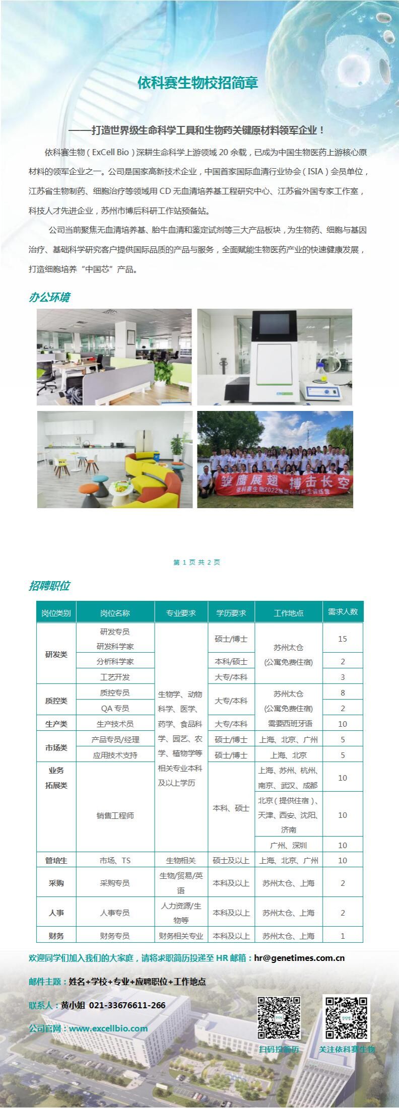 依科赛生物校招简章