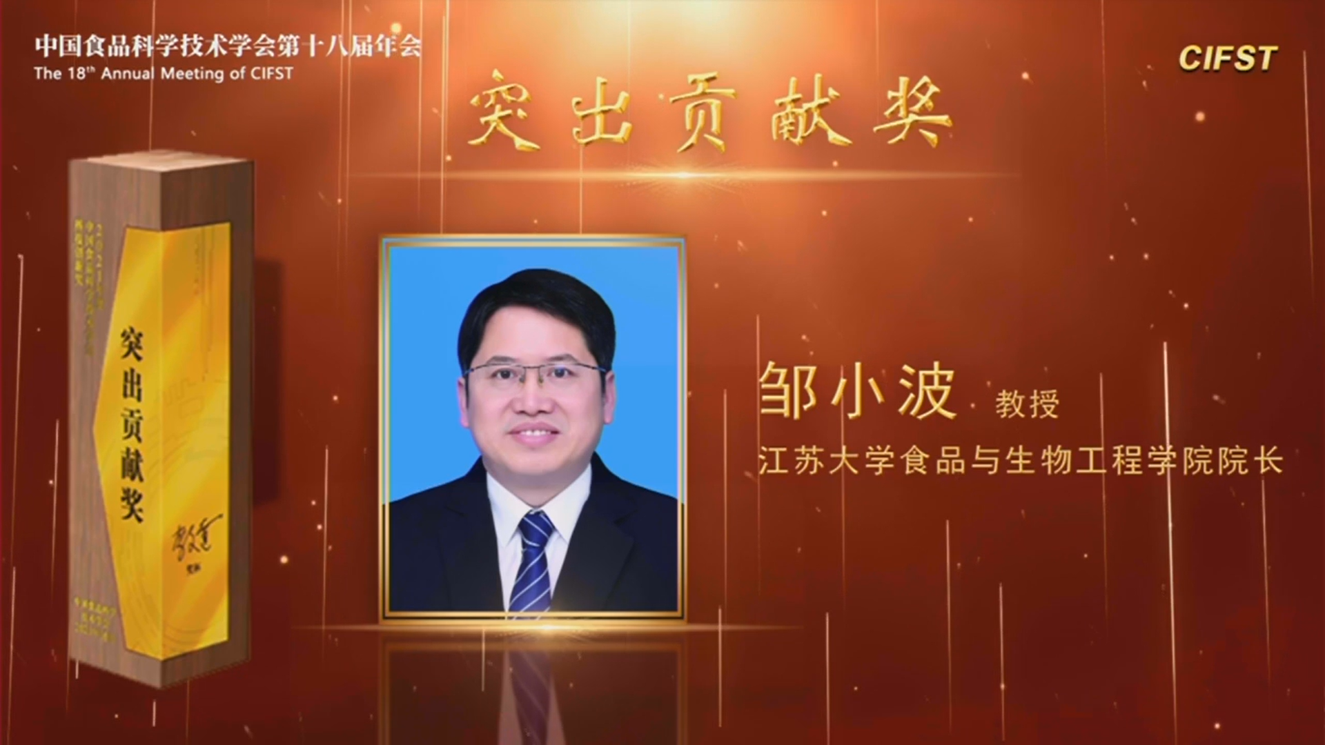 4月6日,中国食品科学技术学会第十八届年会以多渠道同步直播的线上会议形式举行,会上公布并表彰了2021年度中国食品科学技术学会科技创新奖,我院院长邹小波教授荣获突出贡献奖,肖香教授荣获杰出青年奖。