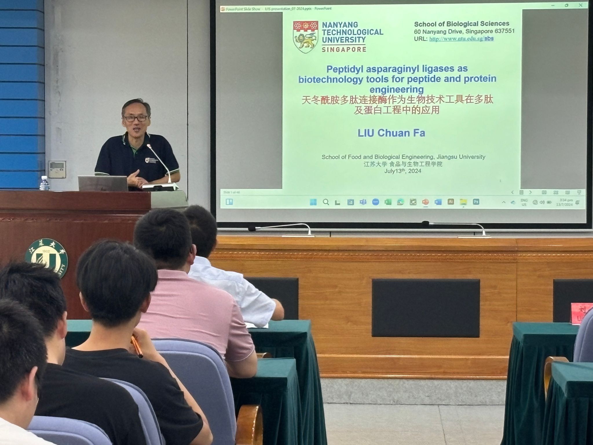 2024年7月13日下午,应bat365中文官方网站的邀请,新加坡南洋理工大学Liu ChuanFa教授在会议中心第三报告厅进行了关于“多肽与蛋白质的合成、修饰”的学术报告。报告由bat365中文官方网站副院长周存山主持,吸引了众多教师、研究生和留学生参加。