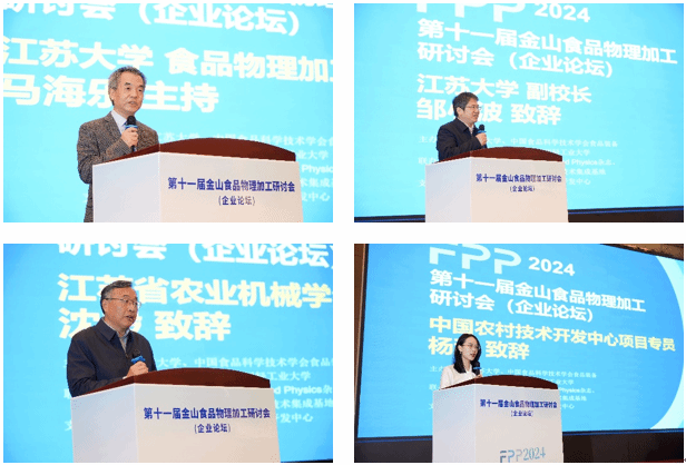 11月25-27日,第十一届金山食品物理加工研讨会(企业论坛)在江苏省镇江市顺利举行,研讨会以“物理强技,催生食品产业新质生产力”为主题,旨在加强食品物理加工技术领域的学术交流与合作,推动科技创新与产业发展。bat365中文官方网站副校长邹小波、江苏省农业机械学会理事长沈毅、中国农村技术开发中心项目专员杨甜出席开幕式并致辞,研讨会bat365中文官方网站食品物理加工研究院院长、中国食品科学技术学会食品装备与智能制造分会主任委员马海乐教授主持。